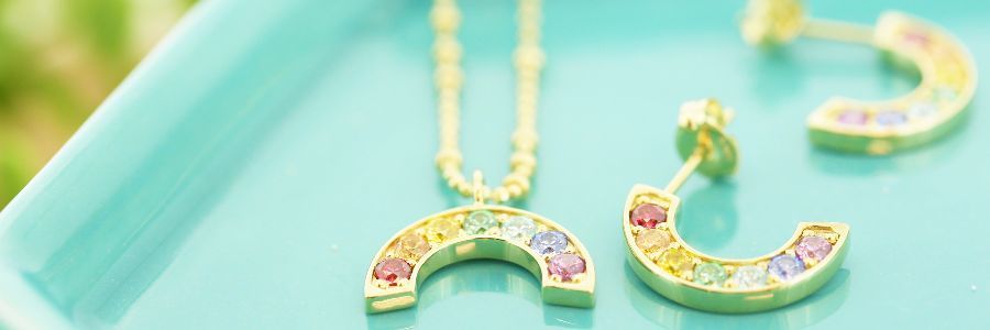 今年並んだ商品ラインは、綺麗な色彩豊かな天然石を使用した商品や、コロンとした可愛らしい太陽モチーフ。レインボーのネックレスや愛らしいヒトデのピアスなど、どれも南国のように明るくハッピーな気持ちになるものばかり。