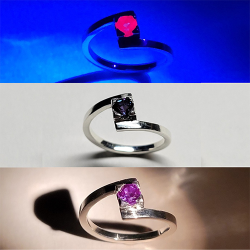 NISHIME JEWELRYでは、蛍光性やカラーチェンジなど、光や環境によって表情を変える石を取り入れたアクセサリーを製作しています。